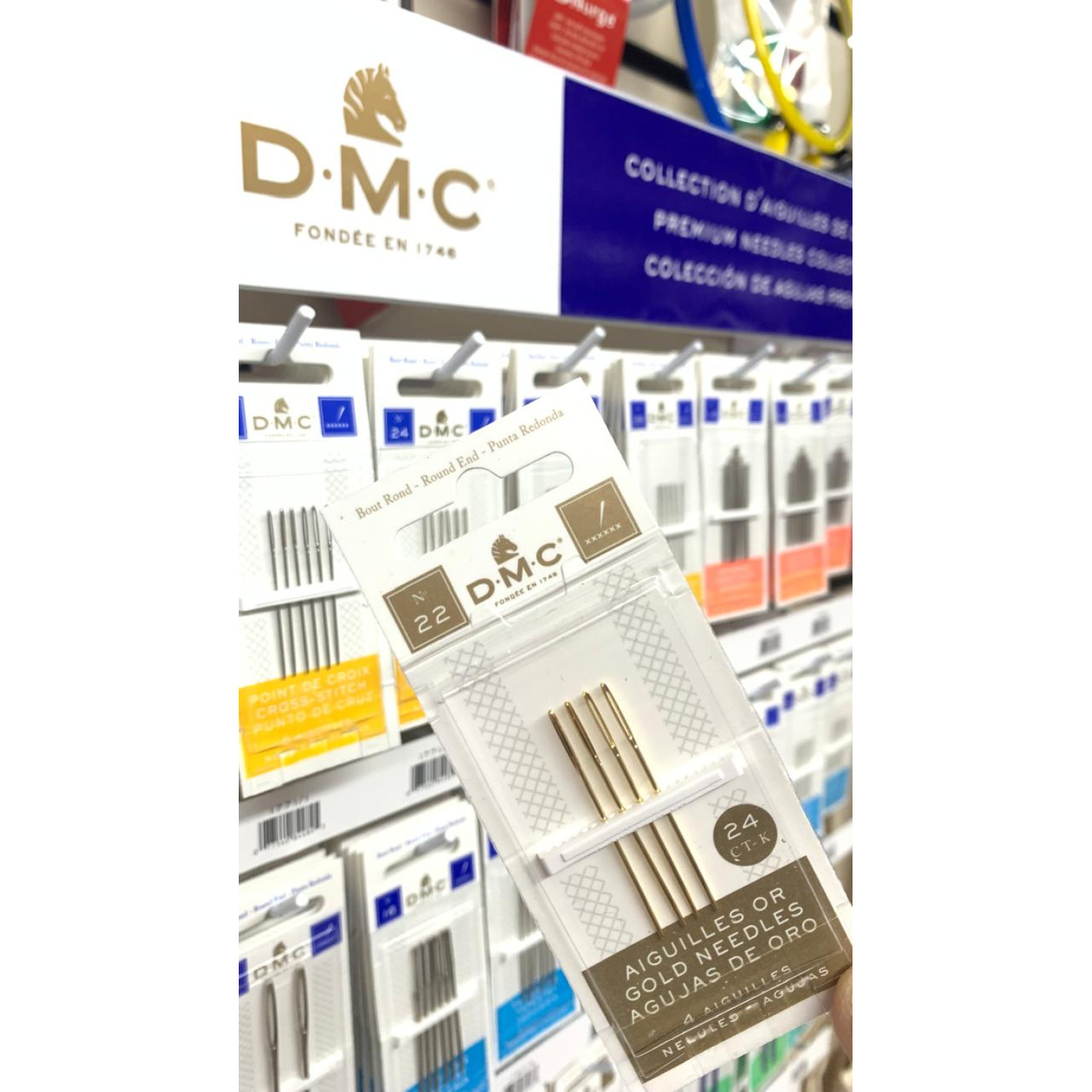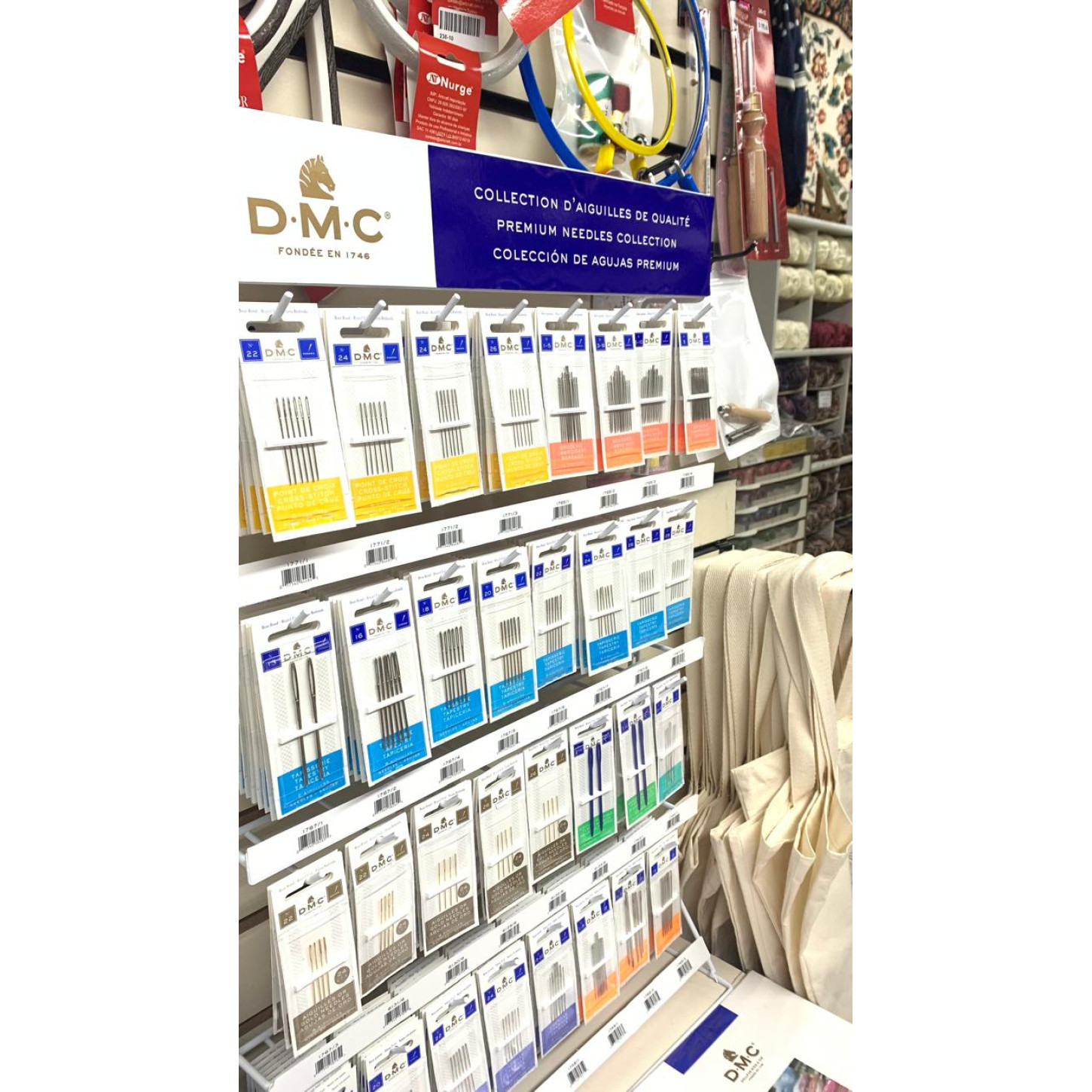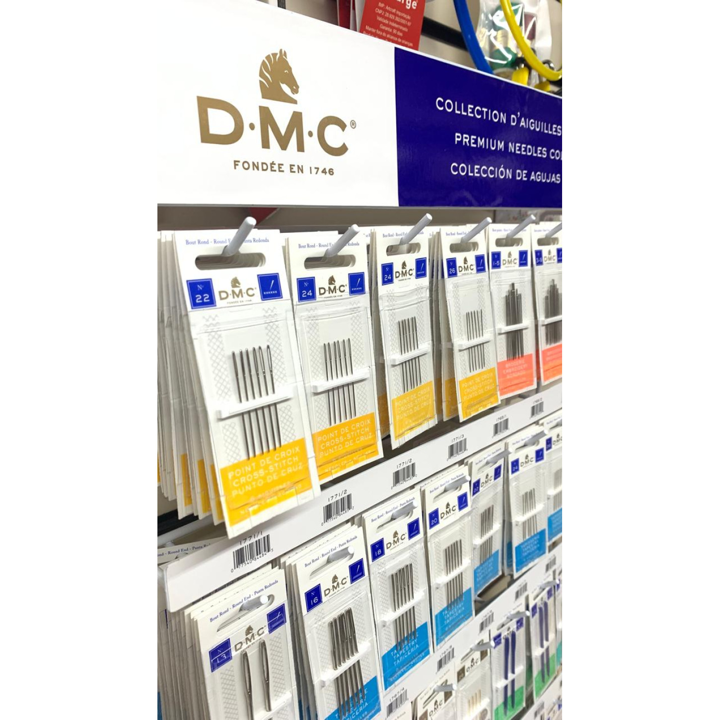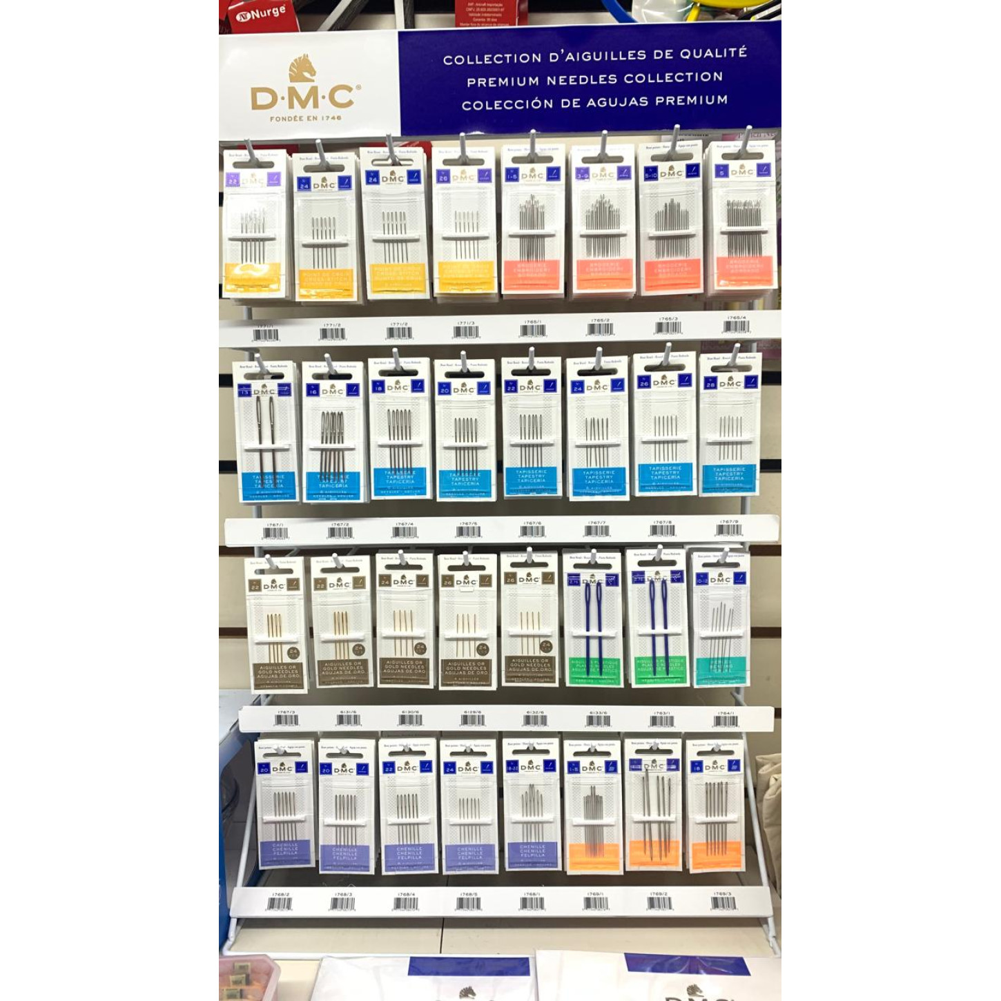 Esse é nosso expositor de agulhas da marca DMC, com agulhas para todos os tipos de trabalho: