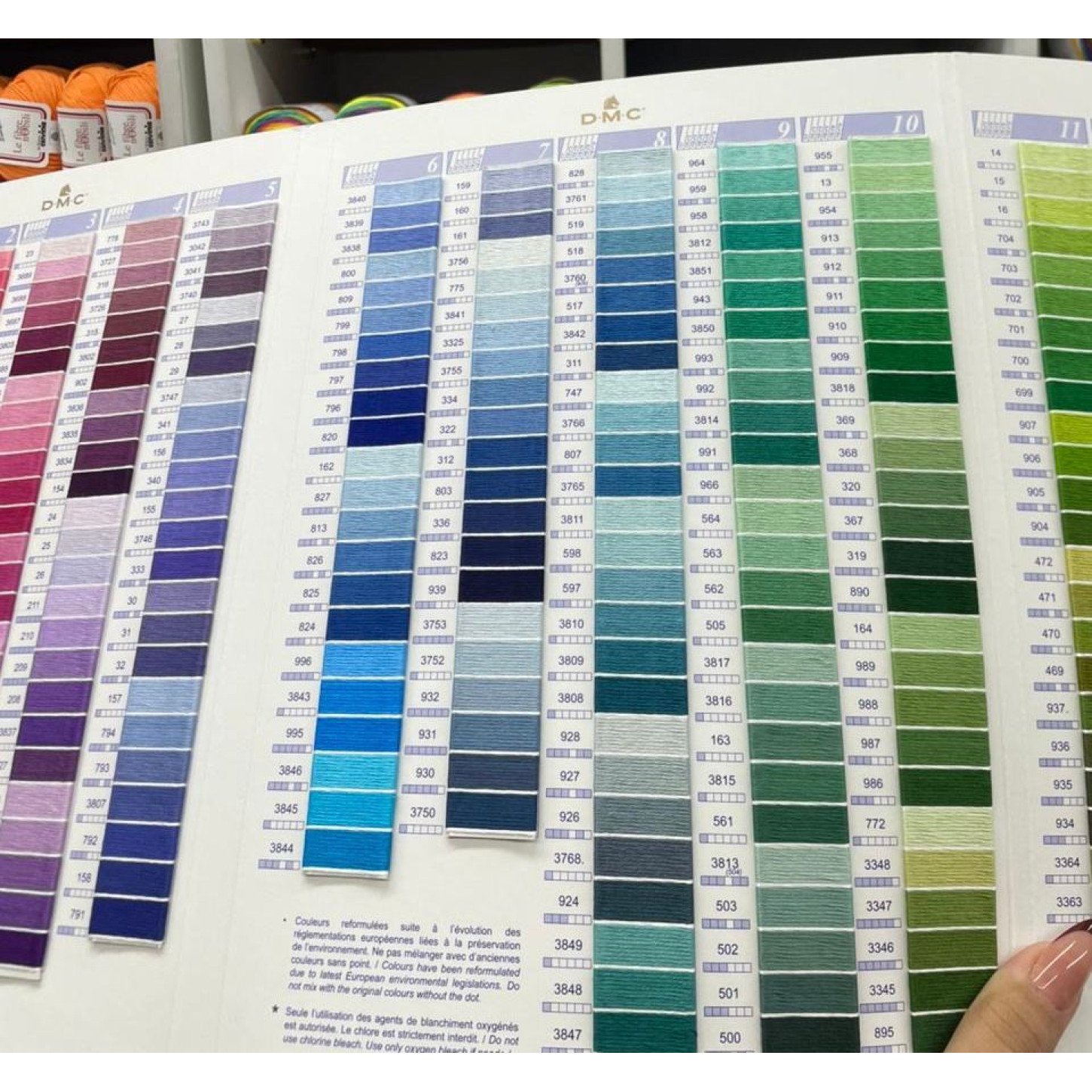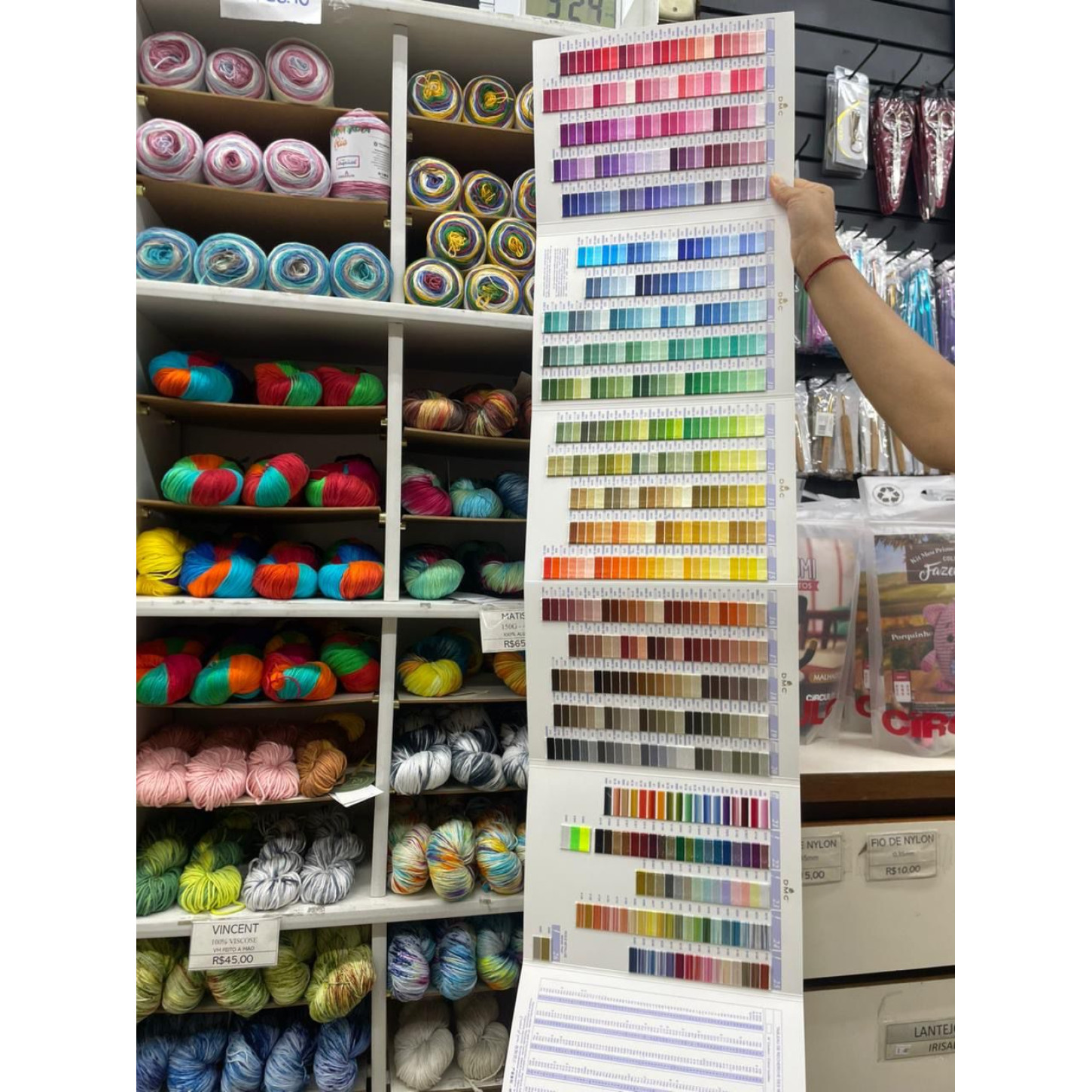 Cada fio vem identificado com seu código, facilitando desde a combinação de tons até a reposição exata.