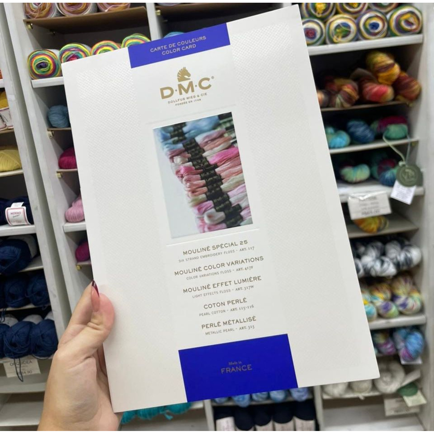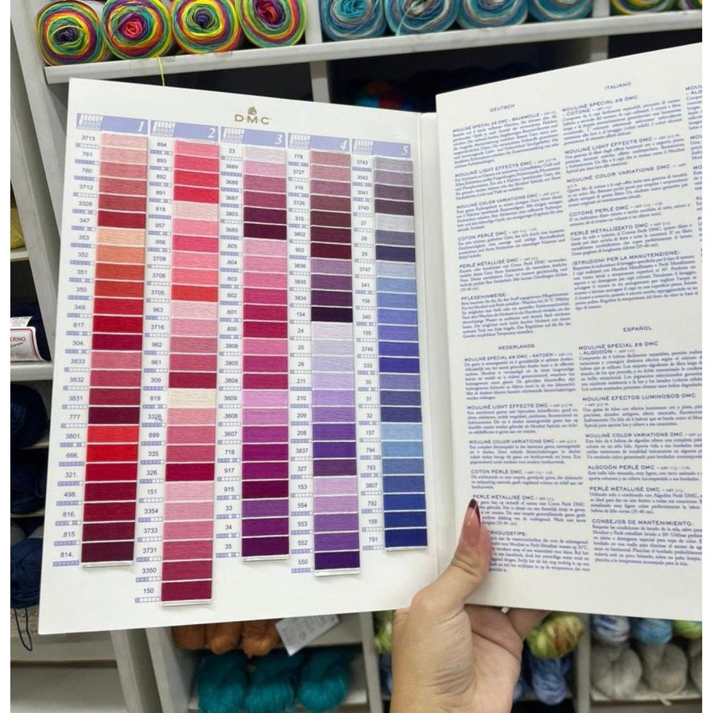 Um verdadeiro sonho de toda bordadeira, o Catálogo de Cores DMC Mouliné Spécial e Perlé é mais do que um simples guia — é a cartela oficial da marca, feita com as próprias linhas originais da DMC.